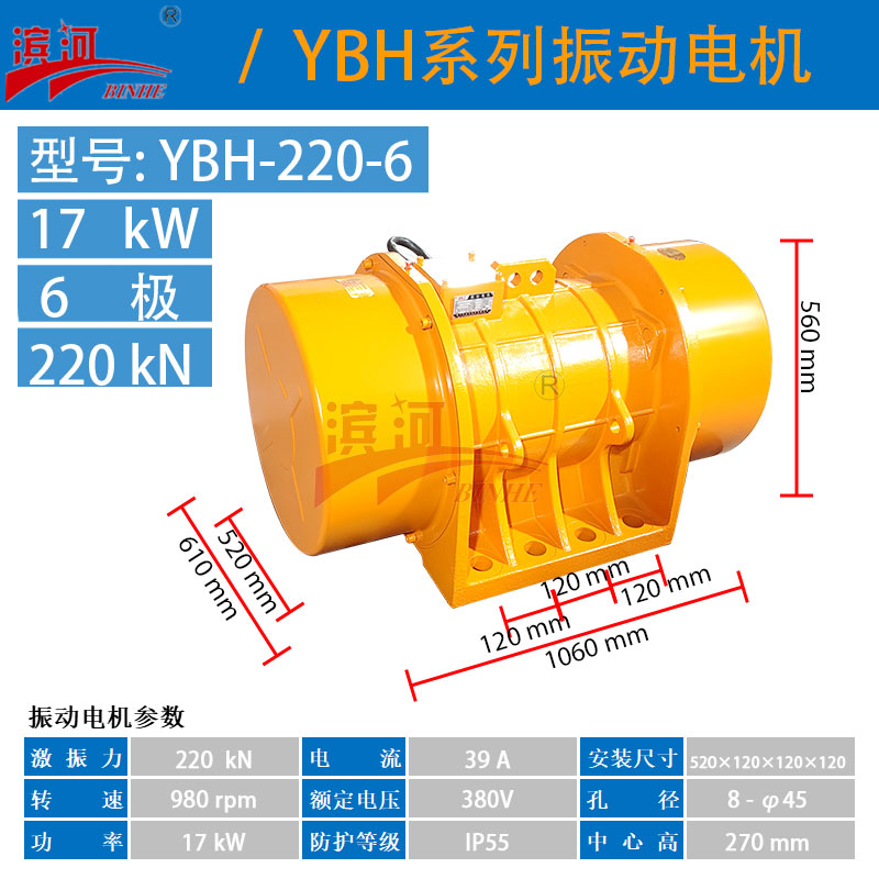 YBH-220-6三相振动电机是一种常用于给料机的振动电机,它的主要特点是激振力强,能够满足给料机在工作过程中的需求。这种电机通常采用三相电源,具有较高的效率和稳定性。