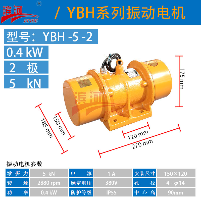 滨河厂家生产的YBH-5-2卧式振动电机是一种广泛应用于工业自动化领域的设备。这种振动电机利用偏心块的高速旋转产生振动,进而实现物料的输送、筛分、振实等多种功能。YBH型号的振动电机通常具有结构紧凑、安装方便、能效高等特点,适用于矿山、冶金、煤炭、电力、化工、建材等行业的各类振动设备。
